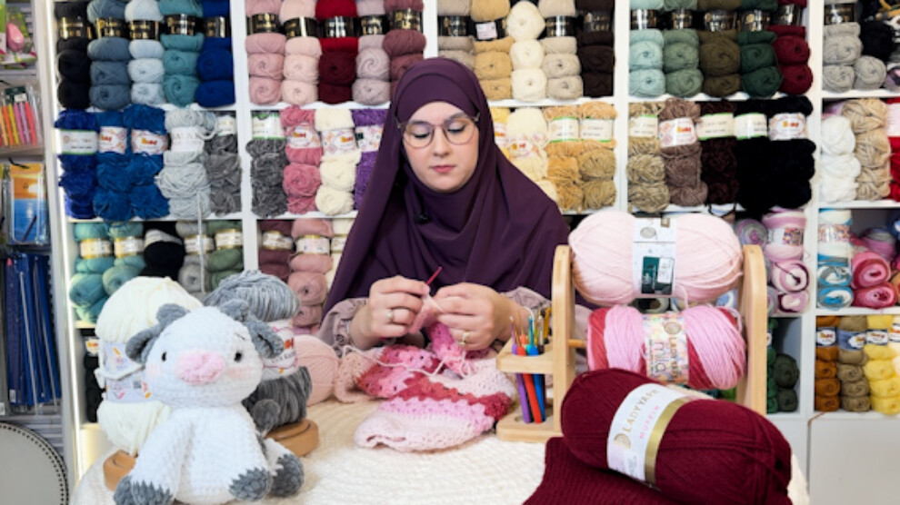 وداخل هذا المحل الذي يُعتبرُ وجهة مثالية لعُشاق الحرف اليدوية والمهتمين بالتصميمات الفريدة، شابة في مُقتبل العُمر تُمرر بأصابعها خُيوط صوف مُلونة وطولية تربطها في النهاية بعُقد مُحكمة الإغلاق، وتضغط عليها باحتراف لتتراص إلى جوار بعضها البعض لتحصُل في الأخير على طقم صُوفي أنيق أو سلال منسوجة يدوياً، وحتى دمى مصنوعة من الصُوف.