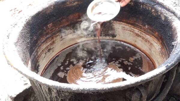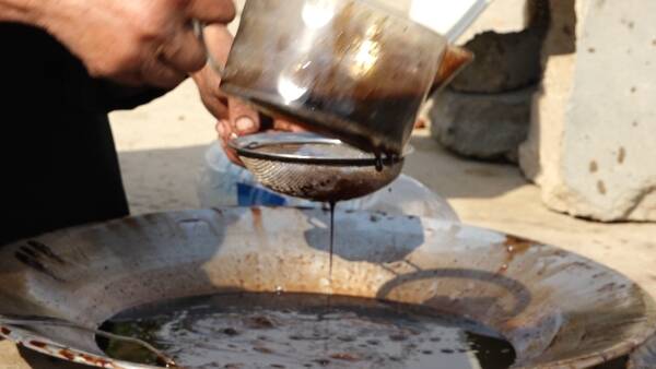 وبعد الحصول على العصير، يُصبّ في قدور كبيرة من الألمنيوم وتُشعل تحتها نار الحطب لعدة ساعات، مع التحريك المستمر بعصا طويلة لمنع احتراق السائل، فمرحلة الغليان كما تبين حمدة العلي تستمر من ست إلى ثماني ساعات، تتناوب خلالها نساء العائلة على مراقبة القدر.