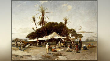 سعى الفنان هيرمان كورودي من خلال لوحته إلى إظهار الحياة الصحراوية في الواحات.