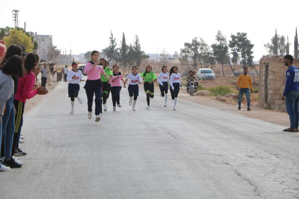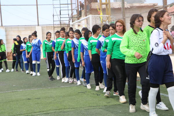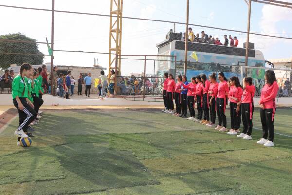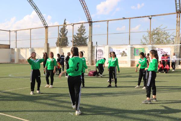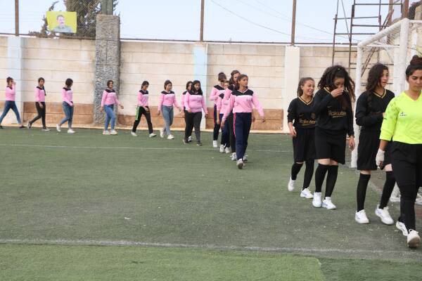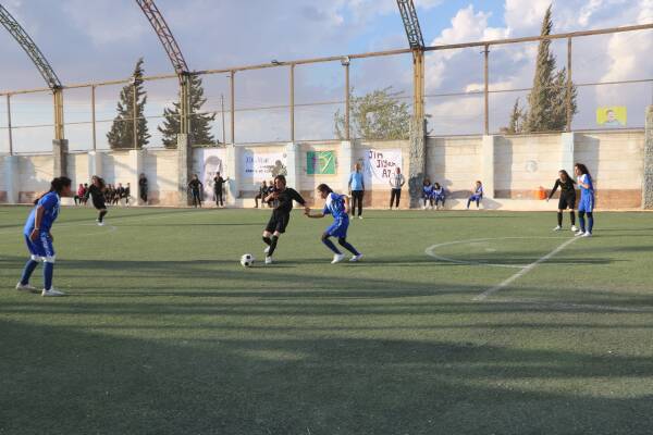 كرة القدم، الجري وكرة السلة وغيرها من الألعاب الرياضية تمارسها الفتيات والنساء في مقاطعة الشهباء، وجل هؤلاء الشابات نازحات من مقاطعة عفرين، تقول الرئيسة المشتركة في الاتحاد الرياضي واللاعبة في نادي كرة القدم دنيا بكر (28) أن التهجير لم يقف عائقاً أمام استكمال اللاعبات لنشاطهن الرياضي.