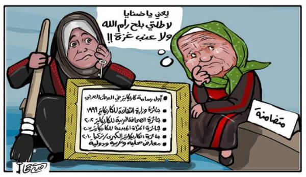غزة ـ امرأة في العقد الخامس من العمر تهتم برسم الخطوط المجمعة بعناية لتنتج لوحة فنية تجسد فن الكاريكاتير، استمرت في الرسم لسنوات دون أن تنشر أي أعمال بهدف صقل موهبتها ومواجهة الظروف المحيطة للوصول إلى حلمها، حتى استطاعت أمية جحا أول رسامة كاريكاتير فلسطينية التغلب على جميع الصعوبات كي تصبح اليوم صاحبة أشهر لوحات تتصدر وسائل الإعلام المحلية والدولية.