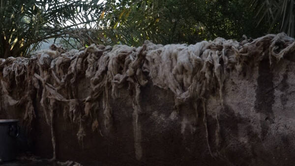 وبعد الجزّ، تنتقل النساء إلى مرحلة غسل الصوف، في الماء النظيف، ويُنقّى من الأتربة والشوائب، ثم يُفرد تحت الشمس ليجف تماماً "نقوم بتنظيف الصوف بدقة، ونغسله في الماء البارد، ثم نفرده على أسطح المنازل أو في الباحات، ليجف بحرارة الشمس، هذه الخطوة أساسية، لأنها تحدد جودة المنتج النهائي".