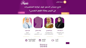 تحت عنوان "خارج حساب الدعم: كيف تواجه المتضررات في اليمن وطأة القهر النفسي؟" نظّمت منصة "نسوان فويس" جلسة نقاشية بمشاركة عدد من المختصات والناشطات، حيث سلطن الضوء على واقع الصحة النفسية للنساء في ظل الأزمات المتفاقمة.