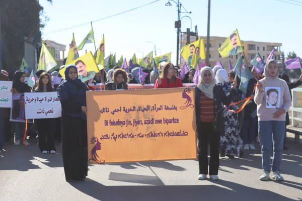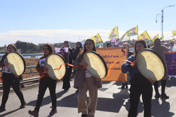 رفضاً للعنف الممارس بحق المرأة وتأكيداً على مواصلة النضال حتى القضاء عليه، شهدت مناطق إقليم شمال وشرق سوريا مظاهرات حاشدة تزامناً مع اليوم العالمي لمناهضة العنف ضد المرأة.