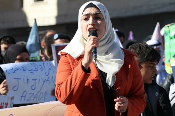 مركز الأخبار ـ أكدت المشاركات في المظاهرات التي نظمت في كل من مقاطعتي منبج والرقة بإقليم شمال وشرق سوريا، على أن شعار "Jin Jiyan Azadî" لن يبقى محصوراً في المنطقة، بل سيطلق العنان في العالم أجمع، حتى تجتمع النساء تحت مظلته، فبناء مجتمعات ديمقراطية خالية من العنف يمر عبر شخصية المرأة الحرة.