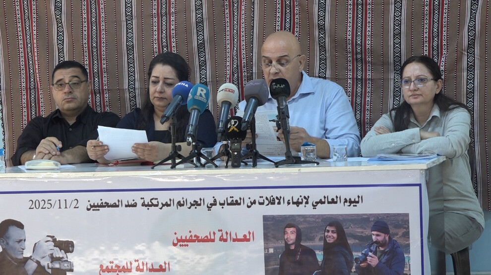 تزامناً مع اليوم العالمي لإنهاء الإفلات من العقاب على الجرائم المرتكبة بحق الصحفيين والصحفيات عقد كل من اتحاد الإعلام الحر ومنظمة حقوق الإنسان في سوريا مؤتمراً صحفياً في مدينة قامشلو دعا فيه من خلال بيان إلى مساءلة ومحاسبة جميع مرتكبي الجرائم بحق الإعلاميين والإعلاميات في مناطق النزاعات.