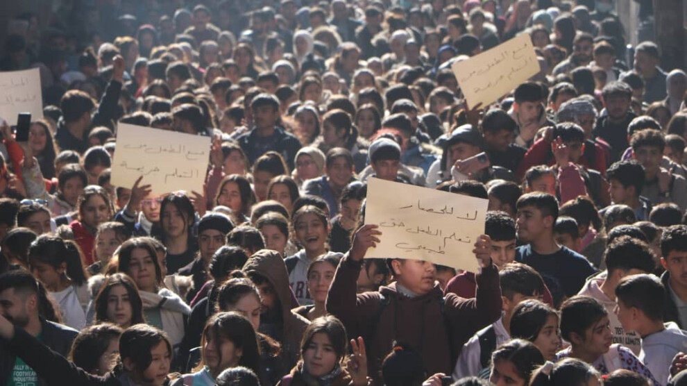 نظّمت لجنة التدريب والتعليم في المجتمع الديمقراطي، اليوم 18 كانون الأول/ ديسمبر، مظاهرة طلابية تنديداً ورفضاً للحصار المفروض على حيي الاشرفية والشيخ مقصود في حلب، وانضم آلاف طلاب والمعلمين من الحيين إلى المظاهرة مطالبين بفك الحصار الذي فرضه جهاديي هيئة تحرير الشام على الحيين منذ أكثر من ثلاثة أشهر.