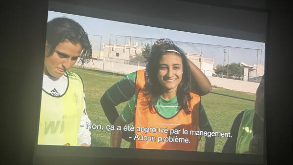 من جهتها، شاركت اللاعبة راوية بلمقدم، حارسة مرمى، تجربتها الشخصية التي تتقاطع مع بطلات الفيلم، قائلة، إن هناك العديد من النقاط المشتركة بينها كمحترفة كرة قدم نسوية وبين بطلات الفيلم، حيث يبقى الصمود والتحدي صفات ينبغي أن تتوفر لدى لاعبة كرة القدم، خاصة في مجتمعات ذكورية ترى في النساء دخيلات ومقتحمات لمجال رجالي بامتياز.