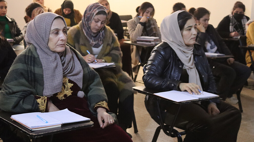 كوباني ـ تتلقى نساء المكون العربي في مقاطعة الفرات بإقليم شمال وشرق سوريا تدريبات فكرية حول مانيفستو السلام والمجتمع الديمقراطي الذي قدمه القائد عبد الله أوجلان كخارطة حل للقضية الكردية، وتحقيق السلام في المنطقة.
