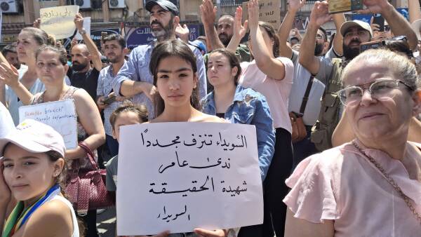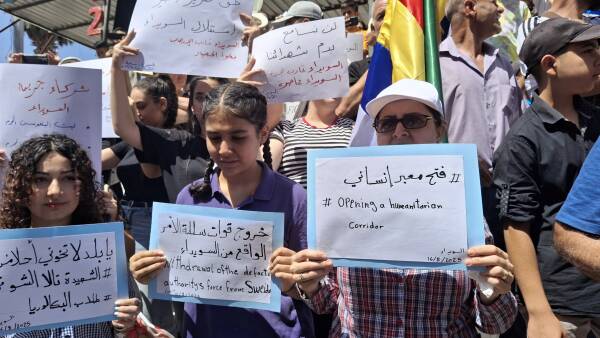 وسط حضور نسائي بارز احتج المئات من أهالي مدينة السويداء السورية في ساحة الكرامة، مطالبين بفتح الممرات الإنسانية وإرسال لجنة للتحقيق في المجازر والانتهاكات التي تعرض لها المدنيون "هذه الجرائم يجب ألا تبقى بلا محاسبة".