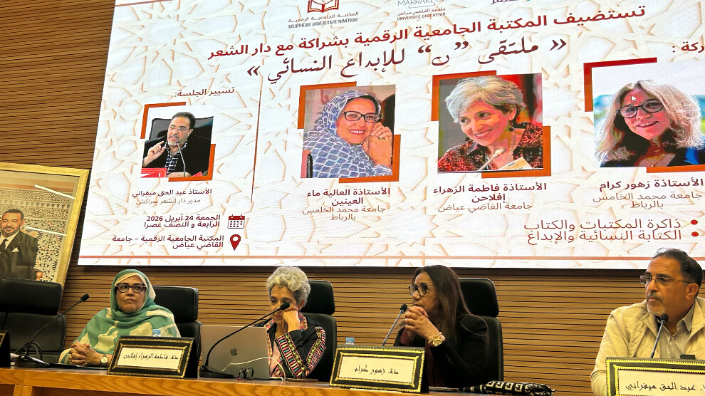 بمناسبة الاحتفاء باليوم العالمي للكتاب وحقوق المؤلف نظّم دار الشعر بمراكش بالتنسيق مع المكتبة الرقمية بجامعة القاضي عياض أمس الجمعة 24 نيسان/أبريل، لقاءً تأسيسياً لملتقى "ن" للإبداع النسائي في دورته الأولى، وقد سلّطت باحثات من جامعة محمد الخامس بالرباط ومن جامعة القاضي عياض بمراكش الضوء على قضايا تهمّ الإبداع النسائي، والأدب الذي تكتبه النساء وكذلك ذاكرة الكتب والمكتبات في ظلّ التحولات الرقمية والذكاء الاصطناعي.