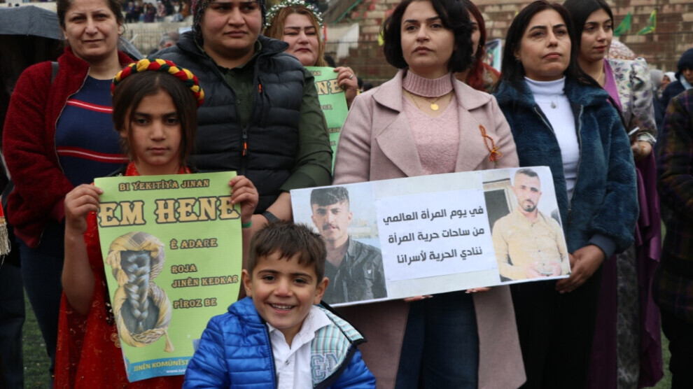 في إطار الاحتفال باليوم العالمي للمرأة والذي يصادف الثامن من آذار/مارس من كل عام، وفي ظل المرحلة الحساسة التي تتعرض فيها مكتسبات ثورة المرأة في روج آفا لتهديدات متصاعدة، خرجت نساء مدينة الحسكة تل تمر، درباسيه، مخيم واشوكاني/رأس العين اليوم الأحد الثامن من آذار/مارس، في مسيرة احتجاجية حاشدة، نُظّمت اليوم في ملعب شهداء سد تشرين بمدينة الحسكة، بمشاركة عائلات الرهائن، مجددين مطالبهم بالإفراج عن أبنائهم.