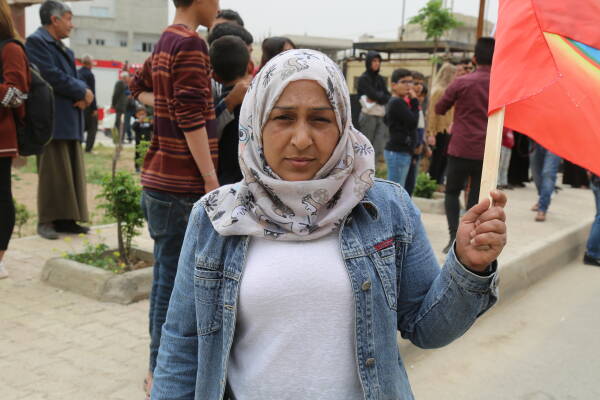 فيما أكدت آسيا اسماعيل أن "الكرد والعرب والتركمان والشركس يجتمعون هنا ليعبوا عن موقفهم لأن هذا الظلم ليس على الكرد فحسب بل على جميع الشعوب"، مبينةً أن الجميع يقاوم الحرب والمؤامرة.