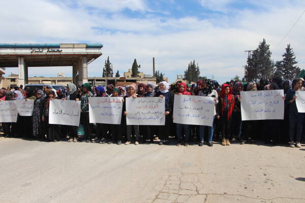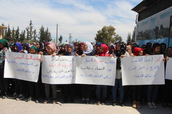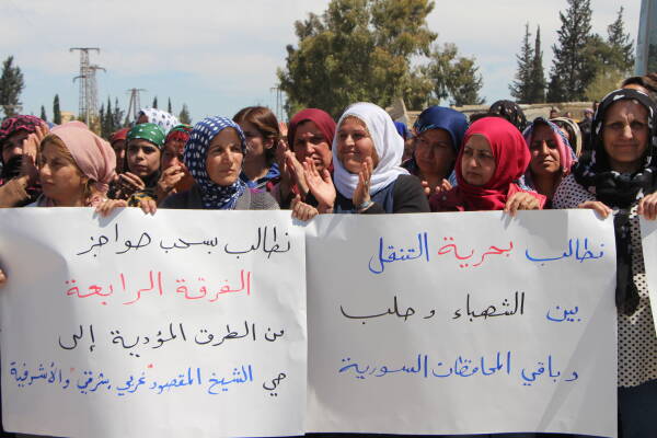 نساء تطالبن بسحب قوات الفرقة الرابعة من مناطق الشهباء وحلب