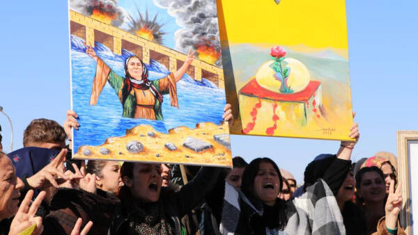 وأوضحت أن موقف النساء من أي مخطط من شأنه أن يهدد مكتسبات الثورة "سنواصل مقاومتنا ونرفع من وتيرة نضالنا أمام أي مخطط أو هجوم يهدد مستقبل ثورتنا"، منددة بالمجازر التي ارتكبت في سد تشرين وطالبت منظمات حقوق الإنسان بمحاسبة مرتكبي الجرائم بحق الأهالي الذين ناوبوا في سد تشرين.
