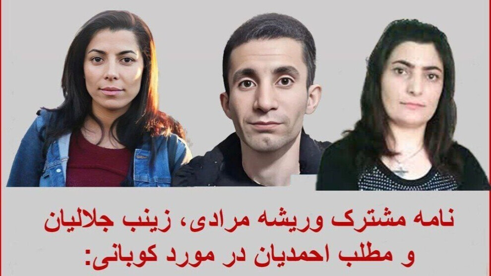 أكد ثلاثة سجناء سياسيين، وهم وریشه مرادي، زينب جلاليان، ومطلب أحمديان، في رسالة أن ما يحدث في كوباني وروج آفا يُعد علامة على تكرار النمط التاريخي العنيف في الشرق الأوسط، وهي دورة أدت مراراً وتكراراً إلى القضاء على المدنيين.