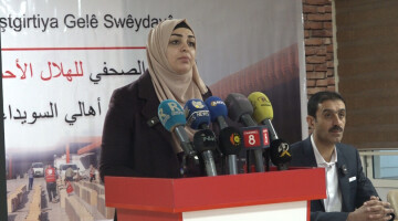 الهلال الأحمر الكردي خلال مؤتمر صحفي كشف عن الأوضاع الراهنة في السويداء، وعن المساعدات التي قدمتها لأهاليها.