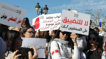 ضد التنكيل بالصحفيين في السجون، شهدت العاصمة التونسية احتجاجات للصحفيين بغية تنفيذ مطالبهم، معتبرين أنه من المخجل أن تصبح الكلمة وحرية التعبير جريمة في تونس بعد الثورة التي شهدتها.
