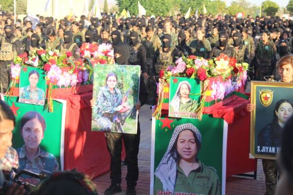 After the speeches, three female commanders were laid to rest at the Martyr Medya and Dijwar Cemetery. Ceremonies for three commanders were also held in Shahba and Dirbesiye.