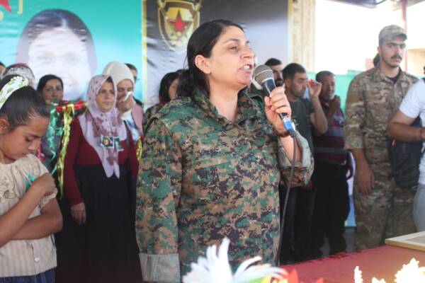 After her speech, Democratic Union Party (PYD) Co-chair Asya Abdullah made a speech. Speaking about the important roles of the three female revolutionary commanders in the Revolution in Rojava, she said that the perpetrators of the attack are Turkey and NATO since Turkey is a member of NATO.