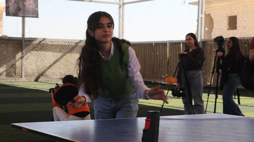 Enas Dagli, 14, a young woman from Afrin, proved her presence and shone in the Joudi Amanos table tennis team after only one year of joining. From the moment she held the paddle, her passion for the sport flowed, and she began developing her skills in what she described as a beautiful and enjoyable sport.