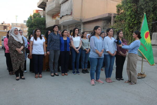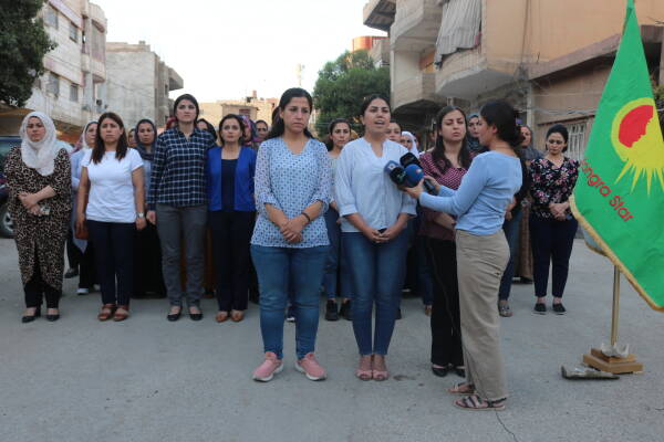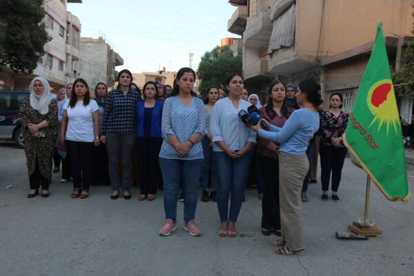 The statement was read by Rîhan Loqo, a coordinating member of Kongra Star. Condemning the attacks on North and East Syria, Rîhan Loqo said, “ In the last attack, Zeyneb Saroxan and Yılmaz Shero were targeted. We condemn these attacks. Since the spark of the Rojava Revolution was lit, they (Turkey and Turkish-backed factions) have been attacking our region by using all kinds of methods to destroy our revolutionary achievements and to break the will of free women. As they see that the Autonomous Administration is a model for the whole world, they intensify their attacks.”