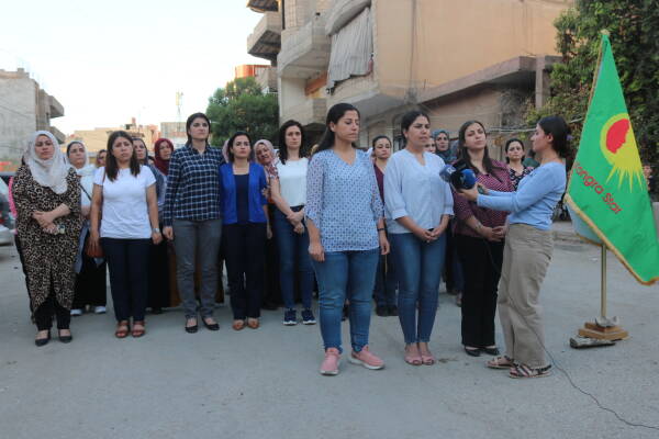 After the statement, women chanted the “Jin, jiyan, azadî (Women, life, freedom)” slogan.
