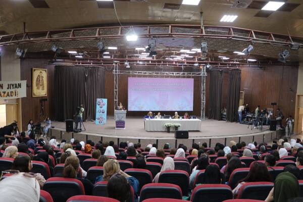 As part of the conference, a video presentation prepared by Kongra Star, depicting the history of the women’s revolution in North and East Syria, was screened. The event continues with speeches by women.