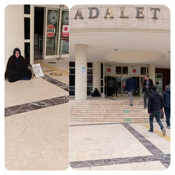 Riha - The sit-in protest held in front of the Urfa Courthouse by Emine Şenyaşar, whose husband and two sons were murdered in the attack carried out by the relatives and bodyguards of AKP Urfa MP İbrahim Halil Yıldız in the Suruç district of Urfa province on June 14, 2018, and her son Ferit Şenyaşar has entered its 619th day.