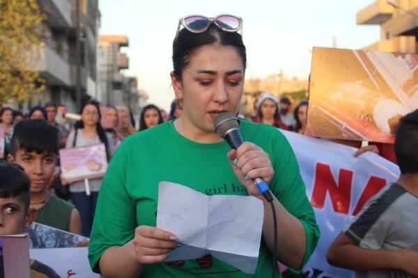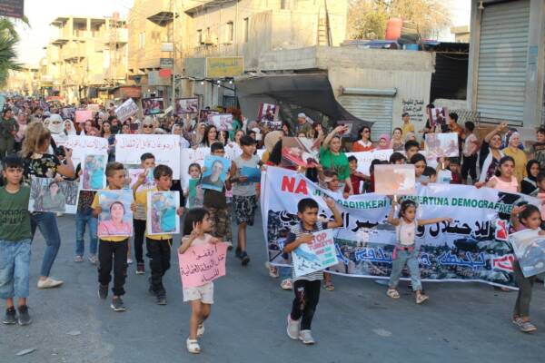 People march in Hasakah to protest Turkish attacks