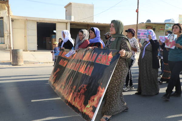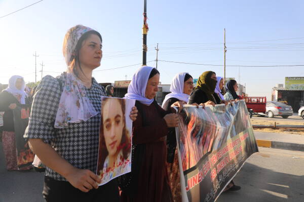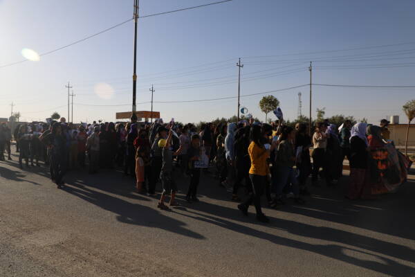 The women participating in the march shouted slogans and carried photographs of the women, who lost their lives in the genocide and banners. The women began to march from the office of the Directorate of Agriculture located in the Sinun town of Shengal. The women ended the march at the Martyr Mam Zeki Crossroads. Teacher Nesrin Selam issued a statement on behalf of TAJÊ.