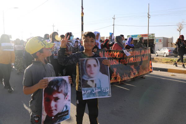 Activist Feho Silêman also made a speech and said, “We, as the Yazidi women, will fight until we avenge our martyrs. We will never stop struggling.”