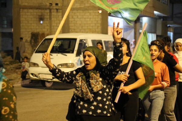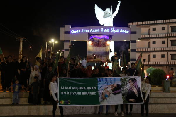 Last evening, young women held a march in Kobanê to protest the killing of Mahsa Amini. During the march they expressed their solidarity with the resisting women in Iran and Rojhelat (Western Kurdistan).