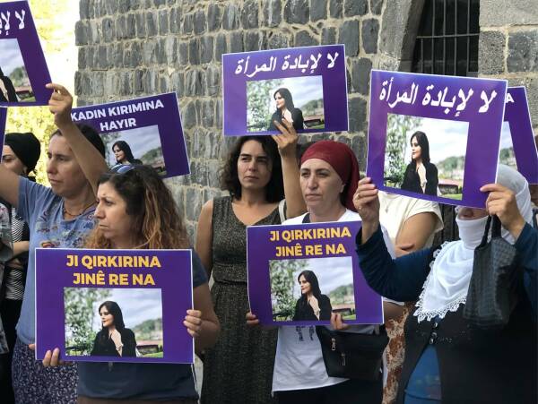 Then, they issued a press statement with the participation of many women, including HDP Women’s Council spokesperson Ayşe Acar Başaran, HDP Group Deputy Chair Meral Danış Beştaş, HDP Youth Assembly Spokesperson Dersim Dağ, HDP MPs Feleknas Uca, Remziye Tosun, Dilan Dirayet Taşdemir and Socialist Party of the Oppressed (ESP) Deputy Co-chair Beycan Taşkıran. The women held placards written in Kurdish,Arabic and Turkish reading, “No to killing of women."