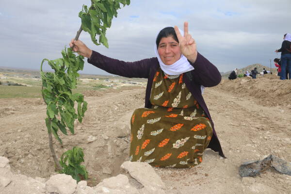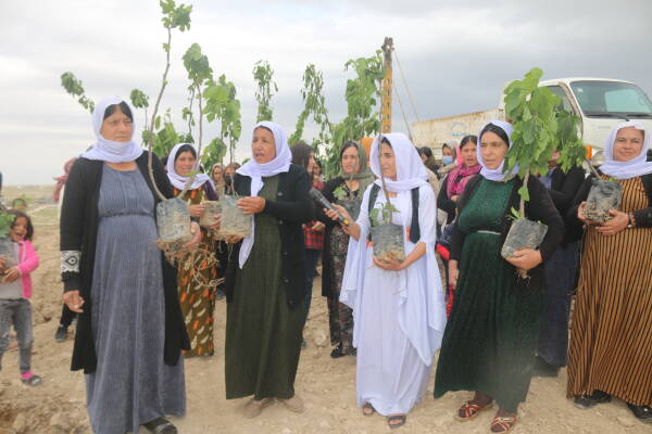 Shengal (Sinjar)- Women continue to organize activities to mark the birthday of Kurdish people’s leader Abdullah Öcalan. In Shengal, Yazidi women gathered in Kesre Valley upon the call of the Yazidi Free Women's Movement (Kurdish: Tevgera Azadiya Jinên Êzîdî-TAJÊ) and planted 300 trees.