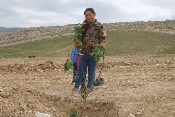 TAJÊ member Tavaf İsmail said, “We plant trees as leader Apo asked from us. By planting trees, we beautify Shengal.”
