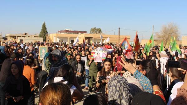 Hasakah- Zeyneb Saroxan, co-chair of the Justice and Reform Office of the Autonomous Administration of North and East Syria (AANES) who was killed by Turkish drones on the road of Derik, and YPJ member Bêrîtan Dersim, who lost her life in Tabqa, have been laid to rest by thousands of people at the Martyr Dijwar Cemetery in Hasakah.