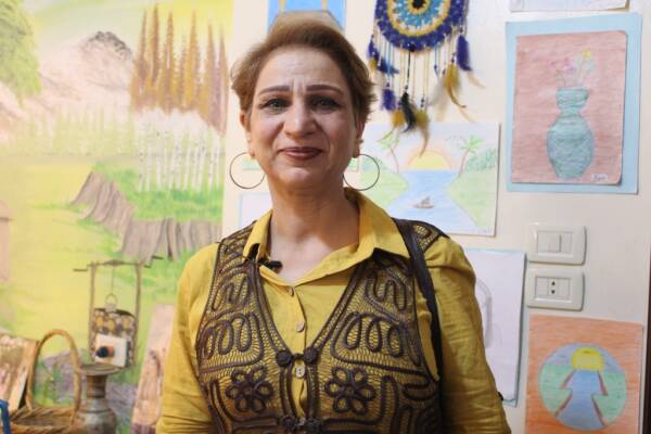 Hasakah- The art exhibition organized by the Hilala Zêrin Cultural Movement and the Culture Committee of Hasakah Canton in Nasra neighborhood continues. Many people have visited the exhibition displaying many artworks. One of the participants of the exhibition is art teacher and painter Besma Enter.