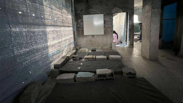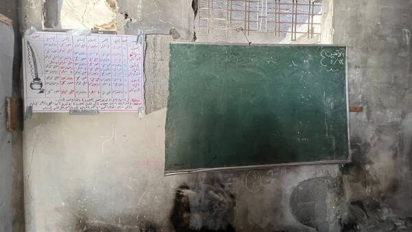 She explained that all the teachers supporting the educational initiative carry painful stories of loss. The founder of the idea lost his entire family; his wife, before her death, advised him not to abandon the education of children. So he established the educational point in loyalty to her memory. Seventeen teachers (5 male, 12 female) work at the school without salaries or rewards, hoping for the crisis to end and for schools to return to their normal work.