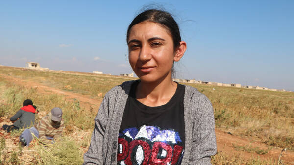 “We have been living in Shahba for seven years,” said Şaziye Îbo, one of the displaced women of Afrin harvesting onions. “We work here to support our family. We usually work in agriculture because job opportunities are very limited in Shahba. We work six hours every day and we are paid 8,000 Syrian pounds for each hour. We endure the difficult living conditions to return to Afrin.”