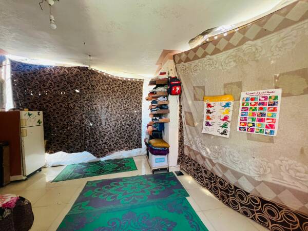 منی عرفات با حسرت ادامه میدهد: «با جان کندن خانه را تمیز کردم و فضا را طوری تقسیم کردم که بشود یک اتاق بزرگ و آشپزخانهای کوچک برای خانوادهام. چند قفسه چوبی، ظروف، طناب و رختخوابهایی که نمیتوان اسمشان را وسایل خانه گذاشت، چیزهایی بودند که از جنوب آورده بودم. این وسایل کمکم کردند که خانه را به محل سکونت موقتی تبدیل کنم.»