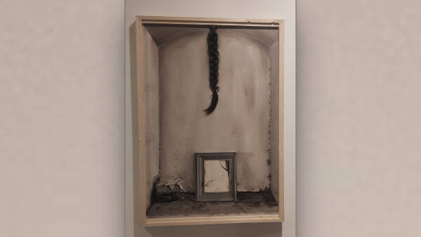 وی در ادامە می‌گوید: به طور اختصاصی در این تابلو نمادهایی که استفاده کردم آینه‌ای پر از خاک و موهای چسبیده به اثر هستند.کوتاه کردن موهای زن در برخی از اقوام ایران به نشانه ناعدالتی‌های جامعه و همچنین غم و اندوه فراوان یک شخص برای از دست دادن عزیزانش است، که باعث می‌شود از موهای با ارزش خود بگذرد. همین طور برخی معتقد هستند که مو نمادی از گیاه است و عمل بریدن آن نیز این معنا را دارد که زن از آسمان درخواست می‌کند تا همچون گریه‌ی او بر گیسو (گیاه) بر زمین ببارد و متوفی را همچون گیاهی از نو برویاند، من از این حرکت الهام گرفتم و موی چیده شده خودم را به تابلو زدم برای بیان این غم که ناشی از فشارهای جامعه از بدو تولد بر روی زنان است تا نشان دهم وقتی جامعه سعی در انکار زنان دارد این زنان هستند که اثبات می‌کنند که در هر زمان و هر شرایطی غیرقابل انکار هستند و می‌توانند همچون گیاهی از نو برویند و جامعه‌ی خود را بسازند.
