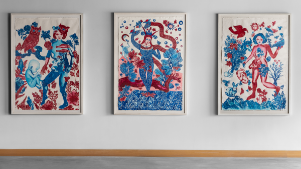 نازان آذری در نمایشگاه تازه خود در لافت آرت، با بهرهگیری از رنگهای نمادین آبی و قرمز، دوگانگی فرهنگ-طبیعت را به چالش میکشد و مخاطبان را به تماشای جهان درونی خود دعوت میکند.