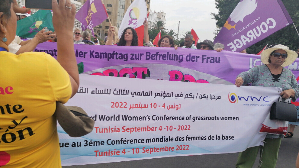 در راهپیمایی سومین کنفرانس جهانی زنان پایه در تونس سخنرانان که از برجستهترین چهرههای زن از کشورهای مختلف شرکتکننده بودند، خواستار حقوق و آزادیهای زنان، عدالت و برابری با مردان شدند.