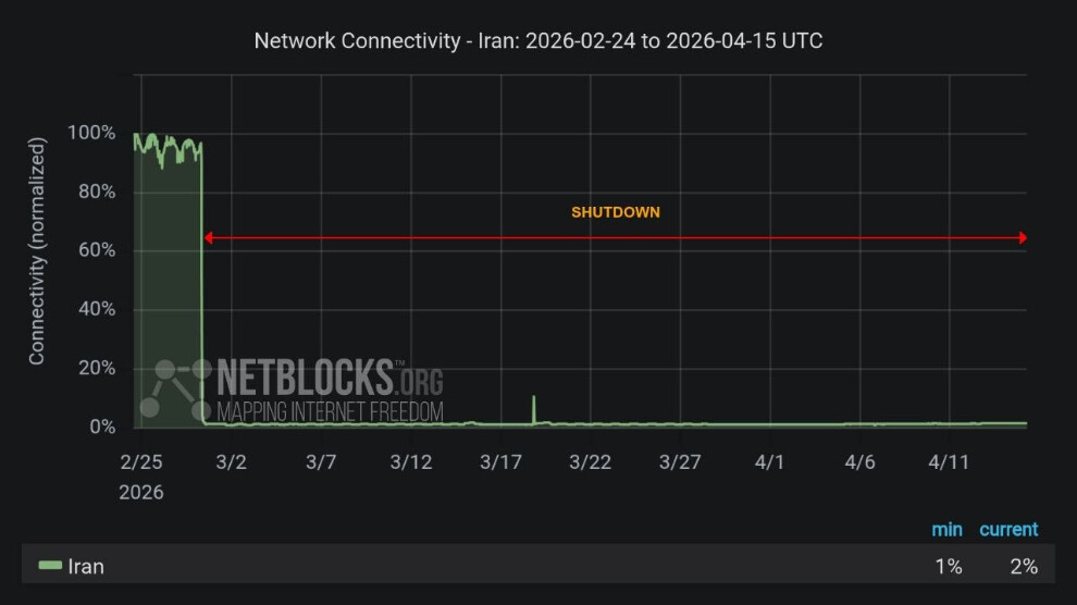 مرکز خبر- سازمان پایش اینترنت، نتبلاکس، امروز چهارشنبه ۲۶ فروردینماه، اعلام کرد که قطع گسترده اینترنت در ایران وارد چهلوهفتمین روز خود شده است؛ وضعیتی که به گفته این نهاد، همچنان دسترسی شهروندان به ارتباطات بینالمللی را بهشدت محدود کرده است.