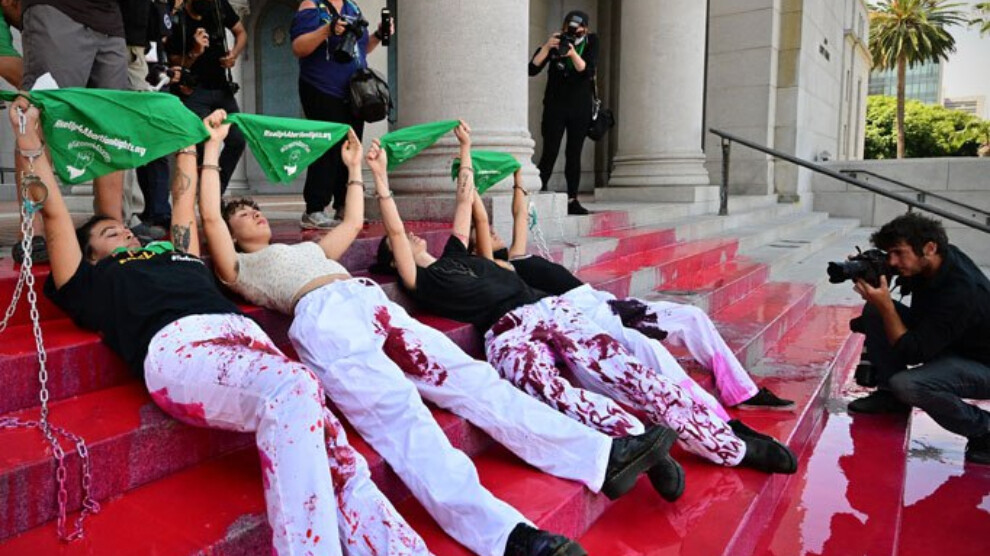 بعد از لغو حکم قانونی بودن سقط جنین، فعالان حق سقط جنین با سرخ کردن پلەهای شهرداری شهر لس‌آنجلس بە حکم دادگاە عالی آمریکا اعتراض کردند.