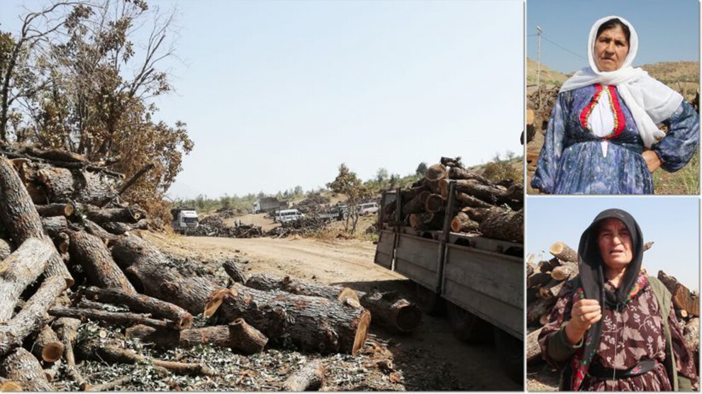 مرکز خبر- بە گزارش خبرگزاری زن، امروز دوشنبە ١ آگوست (١٠ مرداد)،  زنان شرناخ ضمن اعتراض بە قطع درختان توسط نیروهای نظامی ترکیە اعلام کردند »آنها باید خاک و سرزمین ما را ترک کردە و از طبیعت و درختان ما دست بردارند.»