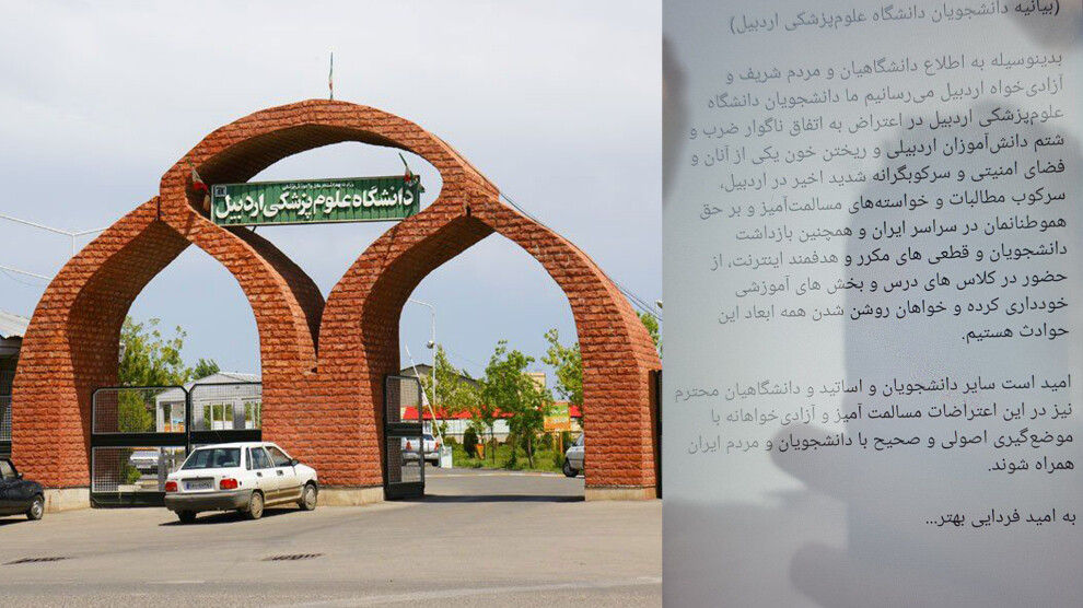 مرکز خبر- امروز دوشنبه ٢۵ مهر ماه، دانشجویان علوم‌پزشکی اردبیل با انتشار بیانیه‌ای، در اعتراض به قتل و ضرب و شتم «دانش‌آموزان اربیلی»،  «فضای امنیتی و سرکوبگرانه‌ی شدید اخیر در اردبیل»، «سرکوب مطالبات و خواسته‌های مسالمت‌آميز و بر حق» مردم در سراسر ایران، «بازداشت دانشجویان» و همچنین «قطعی مکرر و هدفمند اینترنت»، اعتصاب و اعتراض خود را علنی کردند.