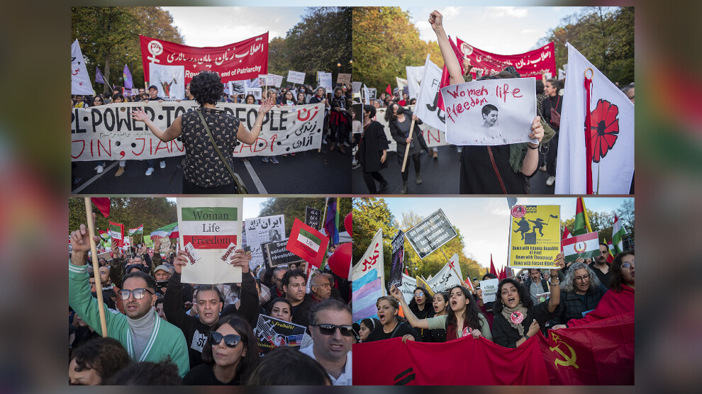 FRANCE24 نوشتە است: ٨٠ هزار نفر در راهپیمایی روز شنبەی برلین در همبستگی با اعتراضات تحت رهبری زنان در ایران کە با کشتە شدن مهسا امینی در بازداشت آغاز شد شرکت کردە و برخی از راهپیمانان با پیوستن بە تظاهرات شعارهایی مانند «زن زندگی آزادی» را با پرچمهای کورد بە اهتزاز درآوردند.