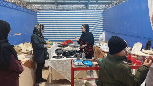 ف.رضایی متصدی غرفه حین انجام هنر مینیاتور بر روی یکی از محصولاتشان دربارەی حضور زنان هنرمند در این عرصه گفت: در طی چند دهەی اخیر با خودآگاهی و بالا رفتن خودباوری در زنان، آنها مقابل هرگونه تبعیض ایستادەاند و دیگر برایشان قابل قبول نیست که هنرهایی مانند خاتم‌کاری، مینیاتور، معرق‌کاری، منبت‌کاری، قلم‌کاری، نقاشی و حتی شغل‌هایی همچون فروشندگی و حضور در بازار تنها مختص مردان است. من سال‌هاست در این عرصه مشغول کار هستم و واقعا چیزی نمی‌بینم که در توان مرد باشد و در توان من به عنوان زن نباشد. البته من هم مانند مردان سال‌ها در این هنرها و این صنعت شاگرد بوده و خاک خوردەام و آبدیده شدەام تا به اکنون به مرحلەای رسیدەام که کسب و کار خودم را راە‌اندازی کردەام و اکنون بیشتر به مدیریت بنگاه هنری-صنعتی رضایی و همچنین پرورش شاگردانم می‌پردازم و خوشبختانه اکثر قریب به اتفاق شاگردانم زن هستند. این جای خوشحالی است که زنان جوانی که تازه از راه می‌رسند به چنین هنرهایی سنتی علاقه نشان می‌دهند و دوست دارند در حفاظت از این فرهنگ‌های اصیل شرکت کنند و گوشەای از کار بگیرند.